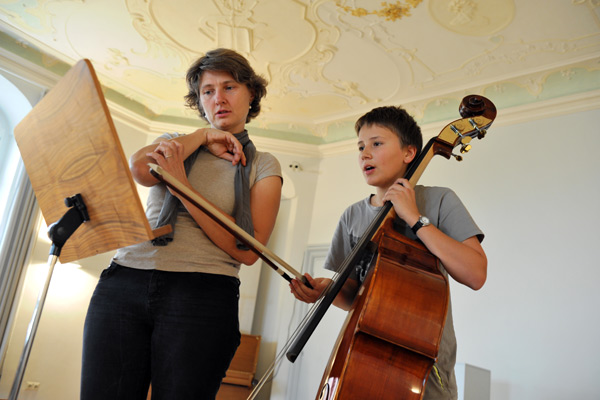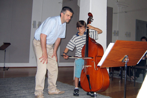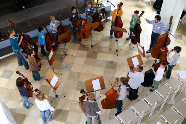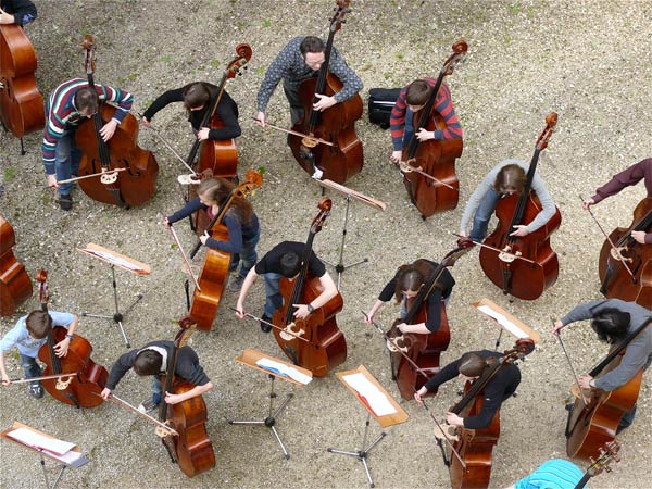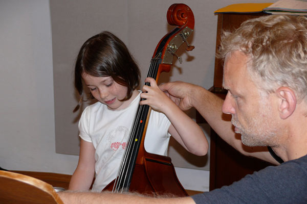10 Teilnehmer haben die Möglichkeit bei zwei Dozenten erste Ensembleerfahrung zu sammeln. Neben dem Kontrabassspiel